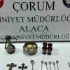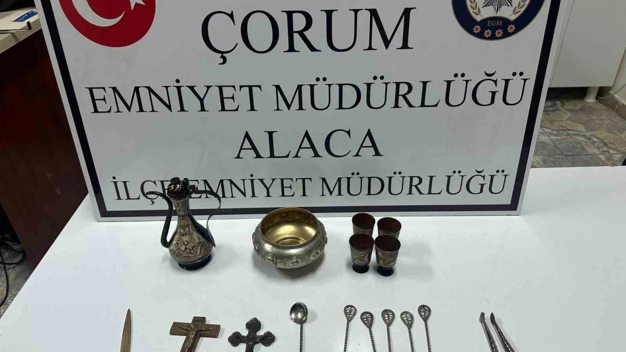 Edinilen bilgiye göre, Alaca İlçe Emniyet Müdürlüğü ekipleri, kültür ve tabiat varlıklarının korunması ile kaçakçılığın önlenmesine yönelik çalışmalar neticesinde, B.Y. isimli şahsın adresine operasyon düzenlendi. Şahsın ikametinde yapılan aramalarda, tarihi eser niteliği taşıdığı değerlendirilen 2 adet haç ile çeşitli dönemlere ait olduğu düşünülen malzemeler ele geçirildi. Bulunan materyaller polis ekiplerince muhafaza altına alınarak incelenmek üzere emniyete götürüldü.
