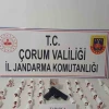 Çorum’da jandarma ekiplerinin düzenlediği operasyonda binlerce sentetik ecza hapı ve ruhsatsız tabanca ele geçirildi. Operasyonda gözaltına alınan 5 şüpheliden 3’ü tutuklandı.