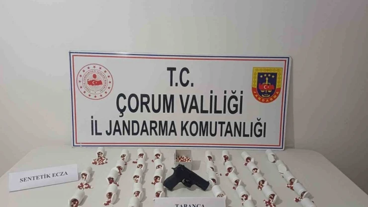 Çorum'da jandarma ekiplerinin düzenlediği operasyonda binlerce sentetik ecza hapı ve ruhsatsız tabanca ele geçirildi. Operasyonda gözaltına alınan 5 şüpheliden 3'ü tutuklandı.