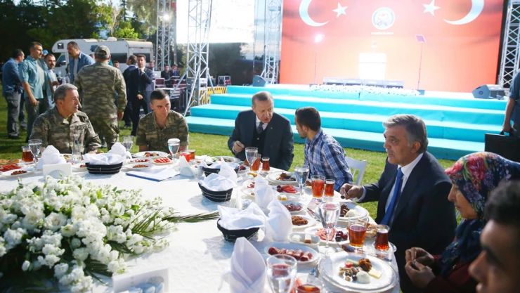 Cumhurbaşkanı Recep Tayyip Erdoğan, 11'inc, Cumhurbaşkanı Abdullah Gül ve Genelkurmay Başkanı Orgeneral Hulusi Akar, Kayseri Büyükşehir Belediyesi tarafından 1'inci Komando Tugayı'nda verilen iftara katıldı. Erkilet Havalimanı'nda karşılanan Cumhurbaşkanı Erdoğan için, gündüz saatlerinden itibaren havalimanı çevresinde geniş güvenlik önlemleri alındı. Erdoğan, kara yoluyla Zincidere 1'inci Komando Tugayı'na gitti. Kayseri Büyükşehir Belediyesi tarafından verilen iftar yemeğine Cumhurbaşkanı...