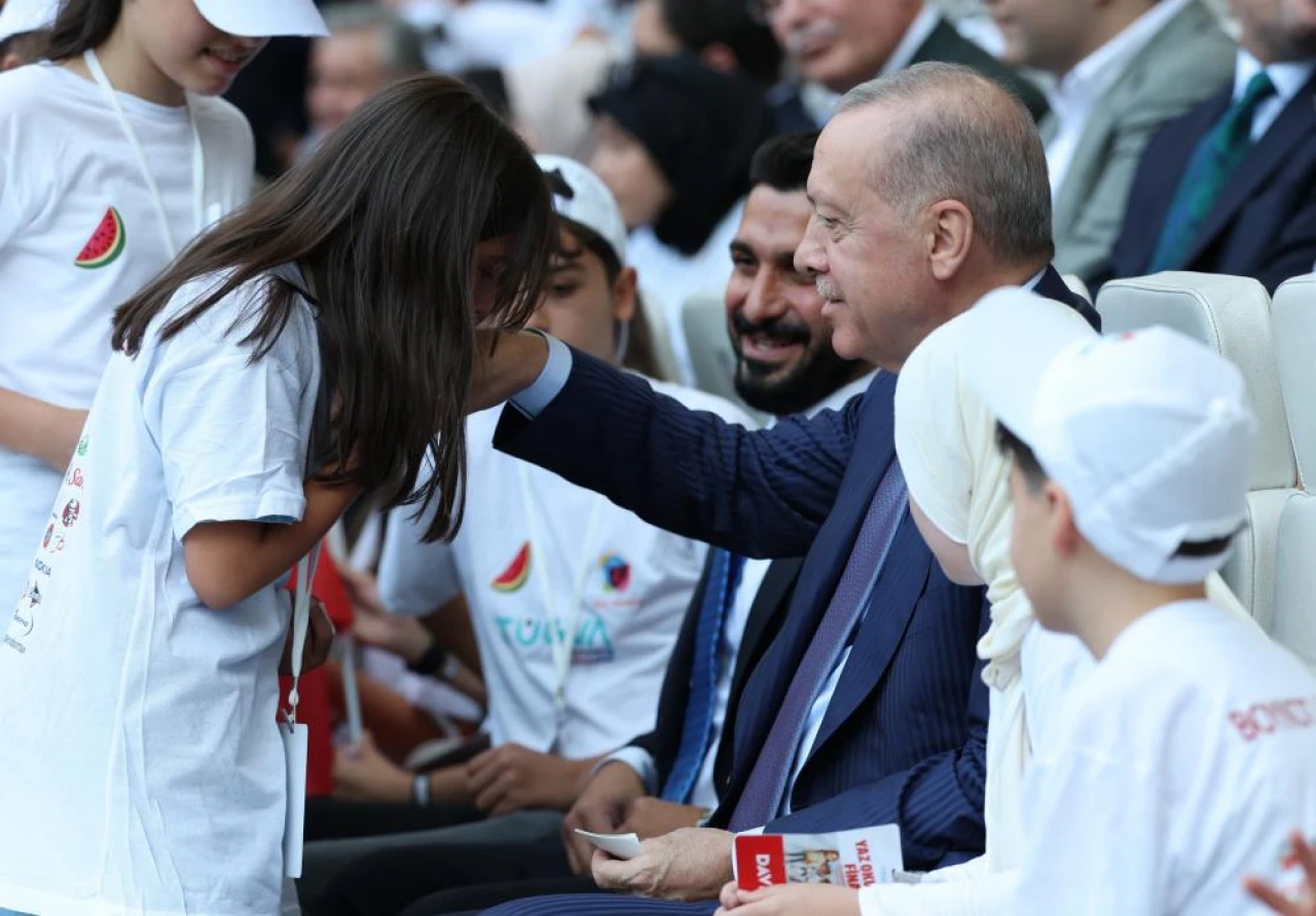 Gençlere seslenen Cumhurbaşkanı Erdoğan, "Bir kere şunu her zaman aklınızın bir köşesinde tutmanızı rica ediyorum. Sizler ebeveynlerinizin yanı sıra bu milletin evlatlarısınız. O yüzden daima iyinin, doğrunun ve haklının yanında saf tutacaksınız. Bilginizi ahlakınızla, şahsiyetinizi merhametinizle süsleyeceksiniz. Çok okuyacak, çok öğrenecek, çok öğreteceksiniz. Size bakanlar hayranlık duyacak. Sizi görenlerin kalbi umutla dolacak. Sizi yolunuzdan döndürmek isteyecekler. Ümitlerinizi, hevesinizi, şevkinizi kırmaya çalışacaklar. Son LGS tartışmasında olduğu gibi size iftira atacak, size kara çalacaklar. Bunlardan asla ayılmayacaksınız. Zorbalıklara boyun eğmeyeceksiniz. Moralinizi hiçbir zaman bozmayacaksınız. Onlara en güzel cevabı başarılarınızla vereceksiniz. Okullarınızın duvarlarına astıracağınız şeref tablolarıyla vereceksiniz. Türkiye ve dünya çapında elde edeceğiniz derecelerle vereceksiniz. Unutmayın, hiç kimse bu ülkede size üvey evlat muamelesi yapamaz. Eğitiminizle, ufkunuzla, karakterinizle, önünüze koyduğunuz hedeflerle sizden sonrakilere örnek olacaksınız. Her şeyin yeri, zamanı, şartları vardır. Hepsinin ötesinde Rabbimizin çizdiği bir kader planı vardır. Bu yüzden, bizim bugün farklı sebeplerle yapamadıklarımızı yarın inşallah sizler başaracaksınız. Ben karşımda işte böyle bir gençlik görüyorum" ifadelerini kullandı.