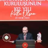 Cumhurbaşkanı Erdoğan, milletçe, insanlığa örnek olan çok özel bir vasfa sahip olunduğunu belirterek, "Biz, geçmişiyle yaşayan, maziden aldığı mirası daha da zenginleştirip atiye taşıyan, ecdadın emanetine gözü gibi bakan vefakâr bir milletiz. Biz vatanımızı, yalnızca aziz şehit ve gazilerimizin değil, aynı zamanda , Rabbimizin de emaneti olarak görüyoruz. İşte tam da bu yüzden, devletimizi ilelebet payidar kılmak, milletimizi asırlık hayalleriyle buluşturmak için yoğun bir mücadele yürütüyoruz. Allah'a şükür, bugün, 102 yıl öncesine göre çok farklı bir noktadayız" değerlendirmesini yaptı.