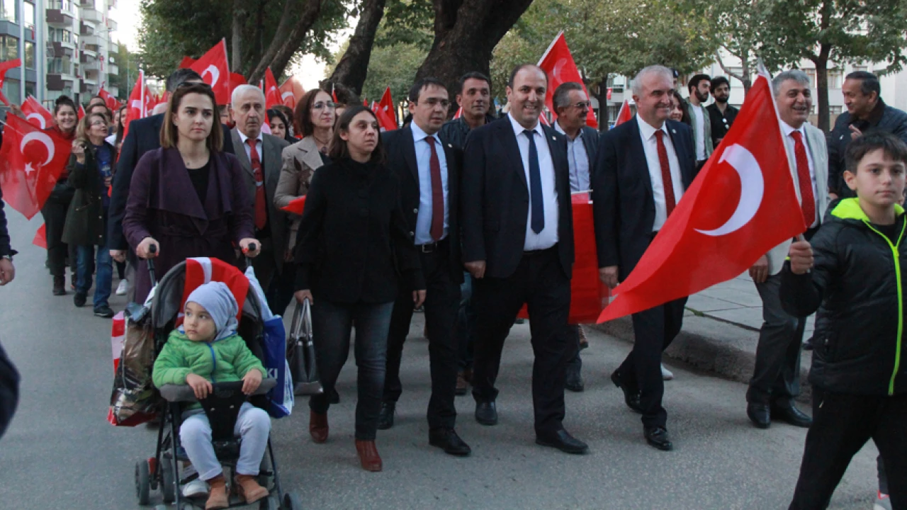 Cumhuriyet Halk Partisi İl Başkanlığı tarafından dün Kışla Parkı'ndan, Cumhuriyet Meydanı'na kadar Cumhuriyet'e Saygı Yürüyüşü gerçekleştirildi. Cumhuriyet Meydanı'nda Atatürk ve Şehit Şerife Bacı Anıtı'na çelenk sunuldu ve ardından CHP İl Başkanı Hikmet Erbilgin ve CHP Milletvekili Hasan Baltacı günün anlam ve önemine binaen konuşma gerçekleştirdi. Yürüyüşe CHP Milletvekili Hasan Baltacı, CHP İl Başkanı Hikmet Erbilgin,...