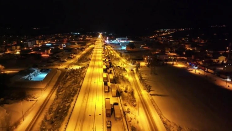 Çankırı’nın Çerkeş ilçesinde, İstanbul’u Karadeniz’e bağlayan D-100 karayolu, yoğun kar yağışı ve buzlanma sebebiyle ulaşıma kapandı. İstanbul istikametinde seyir halinde olan araçlar, zemini kaplayan kar ve buzlanma sebebiyle saatlerce mahsur kaldı. Uzun kuyruklar oluşan kara yolunda sürücüler kontak kapatırken, vatandaşlar belediyenin tahsis ettiği kültür merkezinde ihtiyaçlarını giderebildi. Ekipler, ulaşımın yeniden sağlanabilmesi için çalışmalarını sürdürüyor.