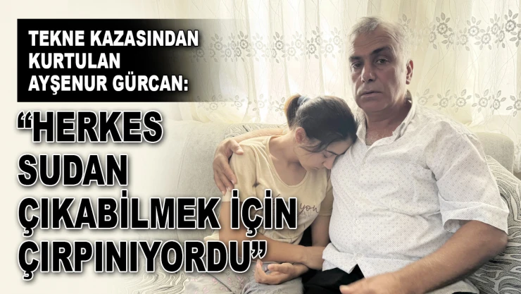 Teknenin alabora olması sonucu herkesin suya düştüğünü belirten Gürcan, "Düşünce 'panik olmayın tekneye tutunun' dediler ama sonra hepimiz suya battık. Ben suda çırpındım. Hülya isimli kadın, bir yandan beni bir yandan da kaptanı çekiştiriyordu. O da benim gibi yüzme bilmiyordu. Sonra ben ondan sıyrıldım. Herkes sudan çıkabilmek için çırpınıyordu. O kadın ve o adam da çırpınıyordu" dedi.