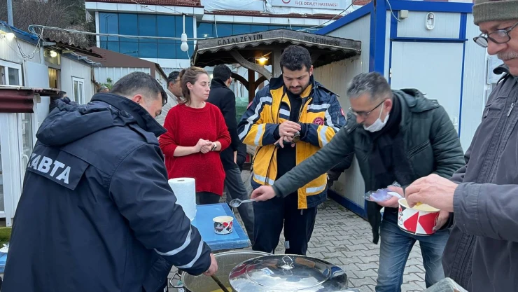 Çatalzeytin Belediye Başkanı Ahmet Demir öncülüğünde İlçe Devlet Hastanesi önünde vatandaşlara çorba ikramı yapıldı. Çorba ikramından sonra depremde hayatını kaybedenler için dua edildi.