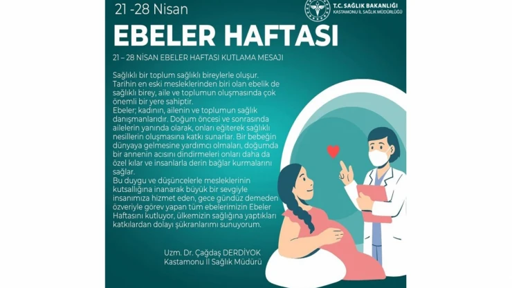 Kastamonu İl Sağlık Müdürü Uzm. Dr. Çağdaş Derdiyok, Ebeler Haftası münasebetiyle bir kutlama mesajı yayınladı.