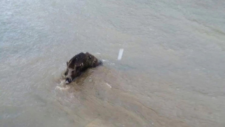 İnebolu'da avcıların arka ayaklarından vurarak yaraladığı domuz, avcıların elinden kurtularak ilçenin içerisinden denize akan çaya girdi. Çevrede korku ve paniğe neden olan domuz, İkiçay Köprüsü altından İnebolu deresine girerek akıntıya kapıldı. Dereden çıkamayan domuz, suda sürüklenmeye başladı. İki buçuk metre yüksekliğindeki dere duvarlarını aşamayan domuz, vatandaşların meraklı bakışlarına sahne oldu. Domuz, çevrede toplanan kalabalığın şaşkın...