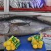 Ege açıklarında yakalanan 1 metre uzunluğunda ve 50 kilogram ağırlığındaki orkinosu, Cebrail Mahallesi Şehit Yavuz Ulutaş Çelikoğlu Sokak’ta bulunan Vefaoğulları Balıkçılık işletmesi satın alarak tezgahında sergiledi.