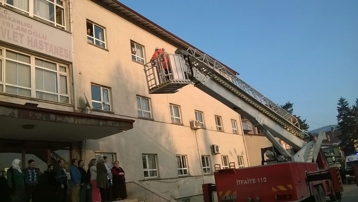 Dr. Münif İslamoğlu Kastamonu Devlet Hastanesi bahçesinde dün yapılan yangın tatbikatı yapıldı. Hastane bahçesinde yapılan yangın tatbikatına itfaiyecilerde katıldı. Senaryo gereği hastanede çıkan yangını hastane çalışanları İtfaiye Müdürlüğünü arayarak yangın ihbarın da bulundular. İhbarı alan İtfaiye Müdürlüğü ekipleri anında hastaneye gelerek çıkan yangını söndürmeye çalışırken, bir yandan da hastanede yataklı tedavi gören hastaları odalarının camlarından...