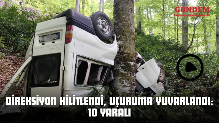 Kastamonu'nun Doğanyurt ilçesinde direksiyonunun kilitlenmesi üzerine yoldan çıkan minibüs, yaklaşık 80 metrelik uçurumda ormanlık alana yuvarlandı. Kazada minibüste bulunan 10 kişi yaralandı.