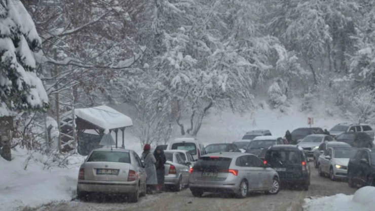 Etrafı ormanlarla çevrili, kar kalınlığının 50 santimetreye ulaştığı Abant Gölü Milli Parkı'nda ziyaretçiler sebebiyle giriş ve çıkışlarda trafik kilitlendi.