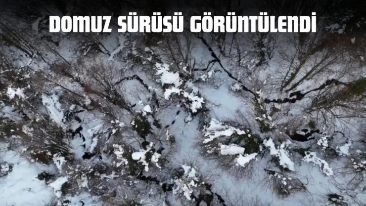 Cide Hamitli köyünde yaşayan Mesut Hurma, karla kaplanan ormanlık alanı dron ile görüntülemek istedi. Bu sırada domuz sürüsüyle karşılaşan Mesut Hurma, kar kalınlığının 1 metreyi bulduğu ormanda yürüyen domuzları havadan görüntüledi. Karlar arasında ilerlemeye çalışan domuzlar bir süre sonra uzaklaşarak gözden kayboldu.