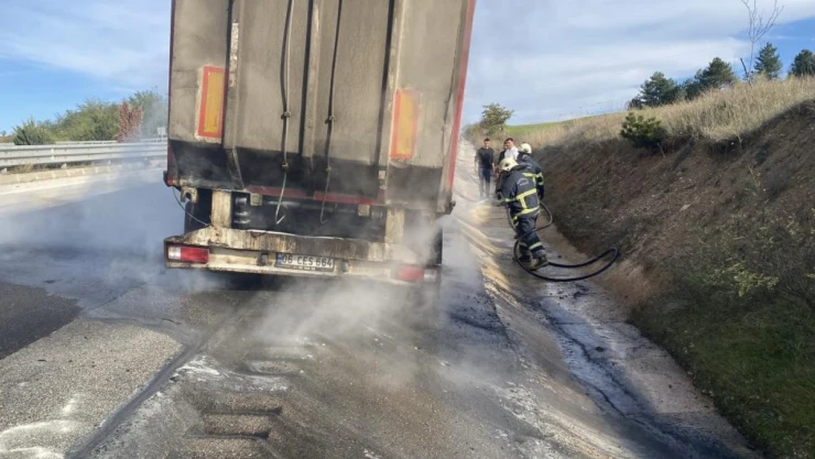Çöp yüklü tırın dorse kısmında çıkan yangın itfaiye ekipleri tarafından söndürüldü.