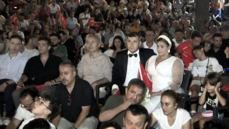 Amasra ilçesinde yaşayan Gökhan Kabaşer, 7yıl önce sosyal medyada tanıştığı Dominik Cumhuriyeti vatandaşı Monica Martinez ile nikahı kıyıldı. Düğünü yapan çift, düğün sonrasında ise kıyafetlerini değiştirmeden ilçe merkezindeki Kültür parkına geldi. Amasra Belediye Başkanı Recai Çakır’ın davetlisi olarak meydanda kurulan dev ekranda 2024 Avrupa Futbol Şampiyonası (EURO 2024) son 16 turu oynanan Türkiye-Avusturya maçını izledi. Üzerlerindeki gelinlik ve damatlıkla maçı izleyen çift erken gelen golle de büyük sevinç yaşadı.