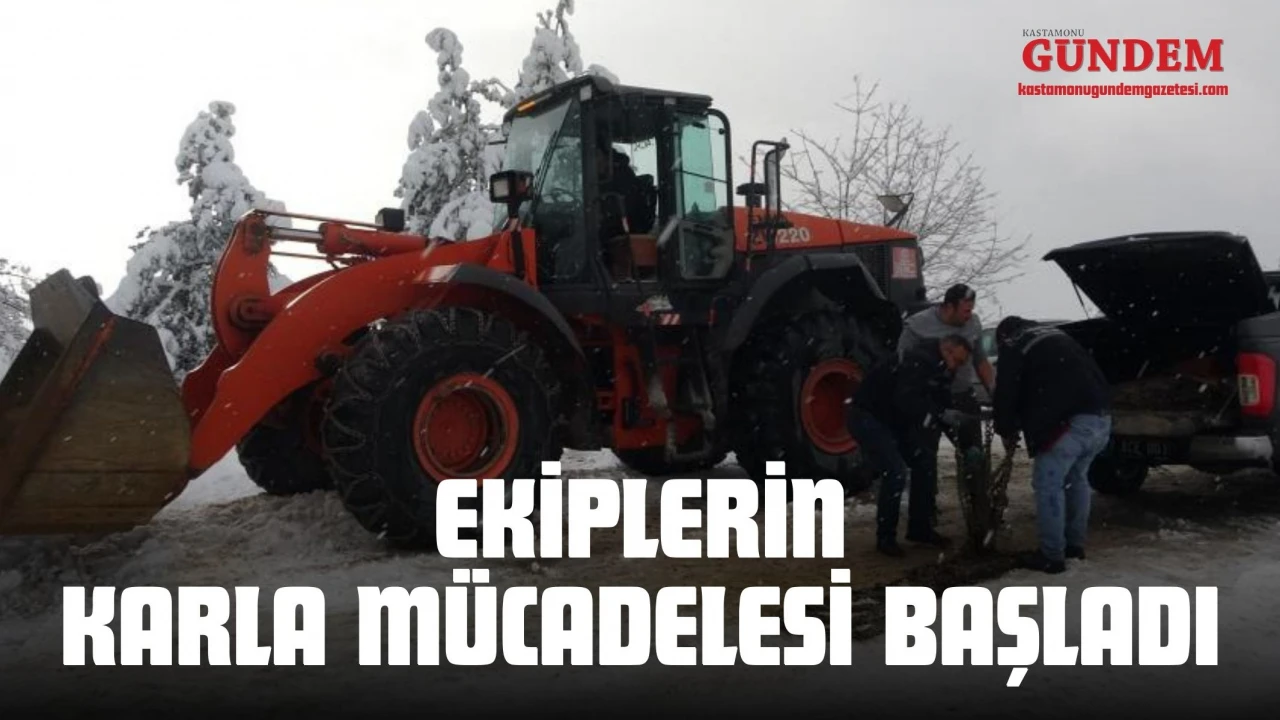 Kastamonu'da son günlerde etkili olan kar yağışı sebebiyle kapanan köy yollarında İl Özel İdaresi ekiplerinin zorlu mücadelesi başladı.
