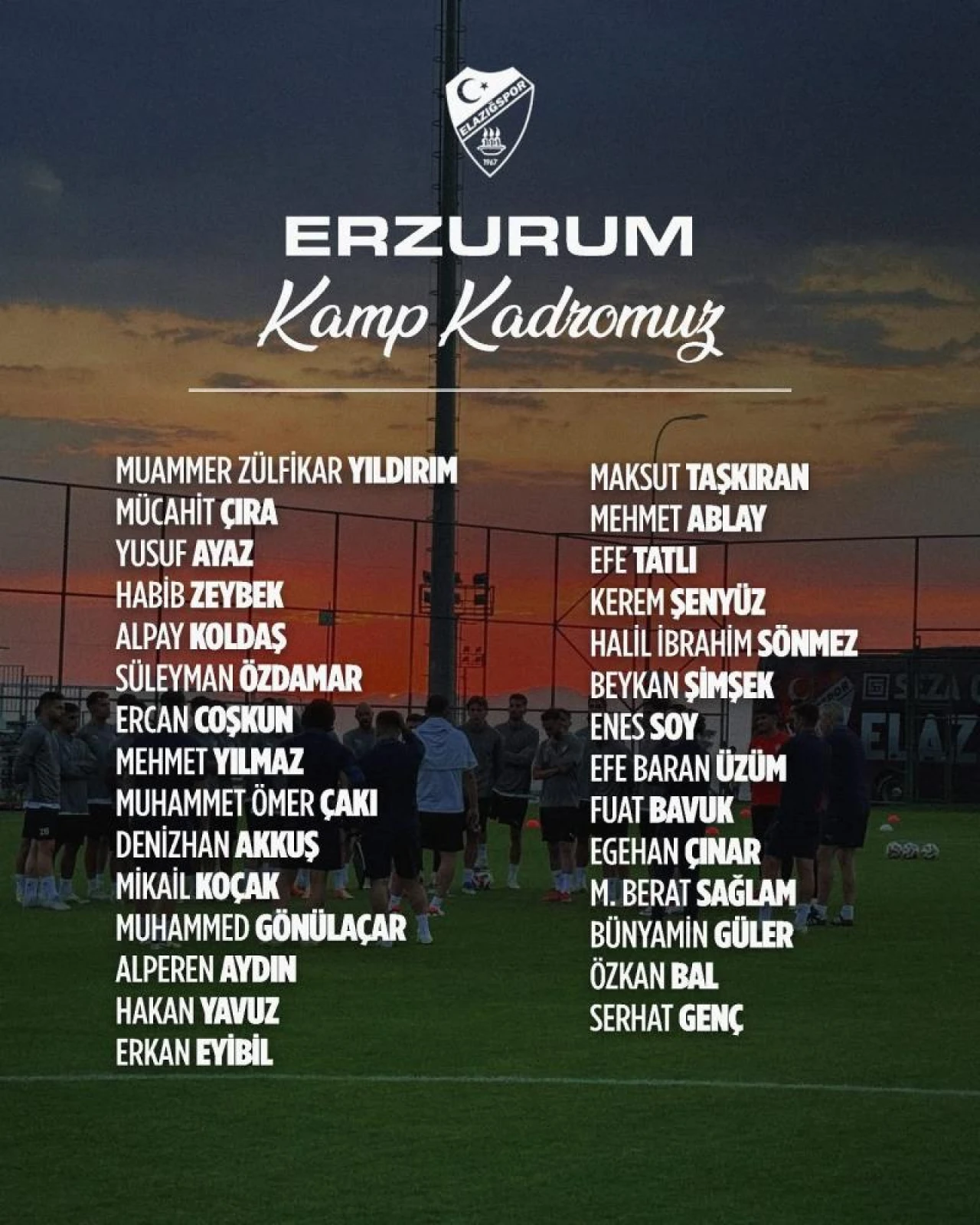 Nesine 2. Lig Beyaz Grup'ta 3. Etap kamp çalışmalarına Erzurum'da başlayan Elazığspor'da kamp kadrosu açıklandı.
