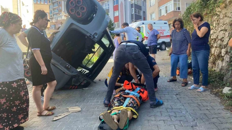 Zonguldak'ta emekli ebenin kullandığı elektrikli otomobil, kontrolden çıkarak yaklaşık iki metreden alt yola uçarak takla attı. Kazada sürücü yaralandı.
