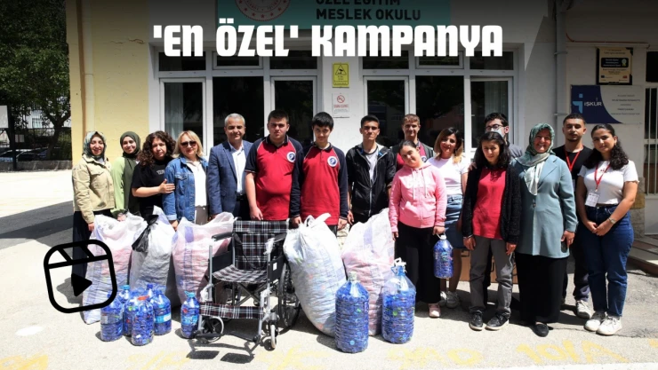 İhsan Ozanoğlu Özel Eğitim Meslek Okulunda eğitim gören zihinsel engelli öğrenciler, öğretmenleri rehberliğinde mavi kapak kampanyası başlattı.