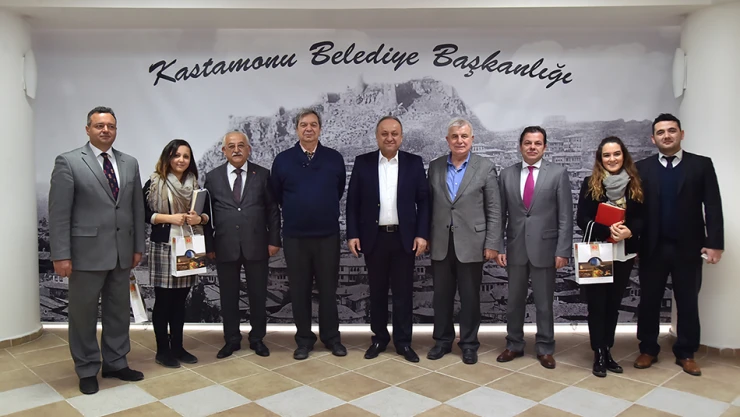 Kastamonu Ticaret Borsası’nın Organize Sanayi Bölgesi’nde kurduğu 10 milyon euroluk Avrupa Birliği hibeli ‘Sanayi Evsaflı Orman Ürünleri Ortak İşleme Entegre Tesisi’ projesiyle ilgili Ticaret Borsası Başkanı Sedat İşeri, meclis yönetim kurulu üyeleri, Projenin Teknik Ekip Takım Lideri Javier Casanova, Proje Geliştirme Yöneticisi Uzmanı Aslı Moral ve Proje Direktörü Genel Sekreter Emre Uzer dün Belediye Başkanı Tahsin Babaş’ı makamında ziyaret etti. Projede yer alan isimleri yerel yöneticilerle tanıştırmak için ziyaretler gerçekleştirdiklerini söyleyen Kastamonu Ticaret Borsası Başkanı Sedat İşeri, projenin son aşamasına gelindiğini belirtti. Belediye Başkanı Tahsin Babaş’ı tarihi ve kültürü canlandırmak için attığı adımları desteklediklerini de ifade eden İşeri; “Bizlerde ilimizin ağaç sanayisinde daha iyi hizmet vermek adına dev bir proje yaptık. Bu proje Bilim, Sanayi ve Teknoloji Bakanlığımızdan da tam destek gördü. İnşallah Eylül ayı içerisinde üretime başlayacağız” diye konuştu. “ORMANLA İLGİLİ ENTEGRE TESİS İSTİYORUZ” Kastamonu’nun yüzde 65’inin ormanlarla kaplı olduğuna vurgu yapan Belediye Başkanı Tahsin Babaş, ağaç ve ağaç ürünlerinin Kastamonu’da işlenmesi adına çalışmalar yaptıklarını ifade ederek; “İlimiz yıllardır bu noktada hep eksik kaldı. Ormanla ilgili entegre tesis istiyoruz. Maalesef ilimizde üretime yönelik yatırım yapmak isteyen kişi sayısı az. İlimiz üretime yönelik yatırımların artmasıyla hızla kalkınacaktır” diye konuştu. Ticaret Borsası’nın Organize Sanayi Bölgesi’nde gerçekleştirdiği projeden ötürü tebrik eden Başkan Babaş, belediye olarak Ticaret Borsası’na desteklerinin her zaman süreceğini belirtti.