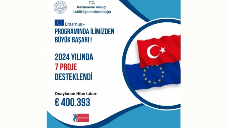 2024 Yılı Erasmus+ Programı kapsamında; okul eğitimi başlığında Abdurrahmanpaşa Lisesi’nin “Anadolu'nun İlk Lisesi Eğitimde Yeşil ve Dijital Bir Dönüşüm Yaratıyor” projesi, Mesleki Eğitim başlığında Kastamonu Taşmektep Mesleki ve Teknik Anadolu Lisesi “Avrupa Stajı ile İstihdam Köprüsü Kuruyoruz” projesi, yetişkin eğitim başlığında Tosya Halk Eğitimi Merkezi Müdürlüğü’nün “Hayat Boyu Değişim ve Bilişim” projesi, Çatalzeytin Halk Eğitimi Merkezi Müdürlüğü’nün "Güçlü Kadın Güçlü Ekonomi" projesi, Gençlik Projeleri başlığında Kastamonu Göl Anadolu Lisesi’nin Gençlik Değişimleri "Eco Heroes” projesi, Okul Eğitimi Akreditasyonu başlığında; Kastamonu İl Milli Eğitim Müdürlüğü’nün projesi ve Mesleki Eğitim Akreditasyonu başlığında; Kastamonu İl Milli Eğitim Müdürlüğü’nün projesi desteklenmeye hak kazandı.