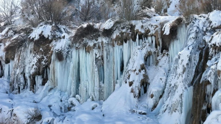Erzincan'da Doğa Dondu, Girlevik Şelalesi Buz Kesti