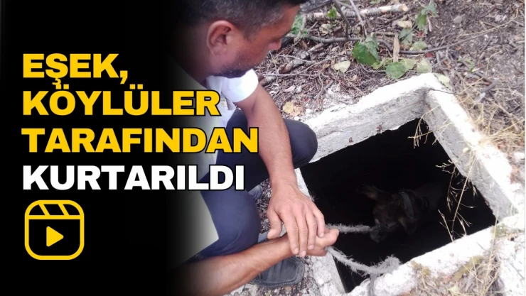 Azdavay'da kullanılmayan boş su deposuna düşen eşek köylüler tarafından kurtarıldı.
