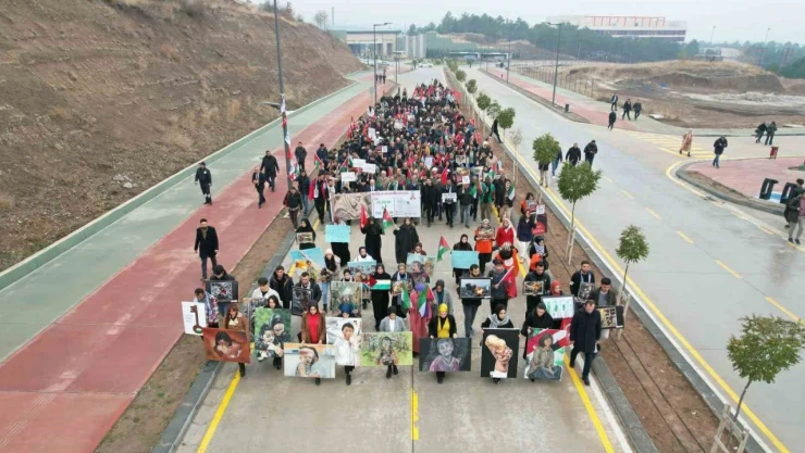 Bu süreçte doğuştan gelen hak ve özgürlüklere her fırsatta değinen bazı batılı liderlerin ikiyüzlülüğüne de şahit olunduğuna dikkat çeken Prof. Dr. Metin Uçar, “Üniversiteler bombalanırken bilimin özgürlüğüne her zaman vurgu yapan sözde bilimcileri de görüyoruz. Anlaşıldığı üzere sözün bittiği yerdeyiz onun için sessizce yürüdük. Sessizliğimizle Filistin’in çığlığının daha çok duyulacağını düşündük. İsrail, insanlık adına ne varsa yok ediyor. Çoğu çocuk ve kadın on binlerce insanı katletti, katlediyor. Hastaneleri, okulları, üniversiteleri, oyun bahçelerini, ibadethaneleri, mülteci kamplarını yani insan olmaya dair değerli olan ne varsa bombaladı, bombalıyor” dedi.