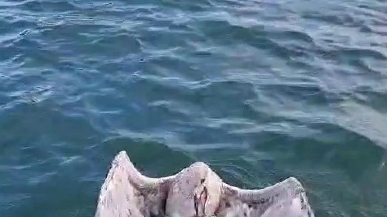 Amatör kamera tarafından kaydedilen görüntülerde kurtarılan martı yeniden denizin üzerinden uçarak uzaklaştı.