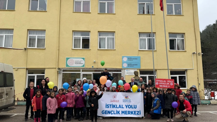 Gençlik Merkezi gönüllüleri, ziyaret ettikleri köy ilkokulunda oyunlar oynayıp hediyeler verdikleri öğrencilere unutamayacakları bir gün yaşatıyor.
