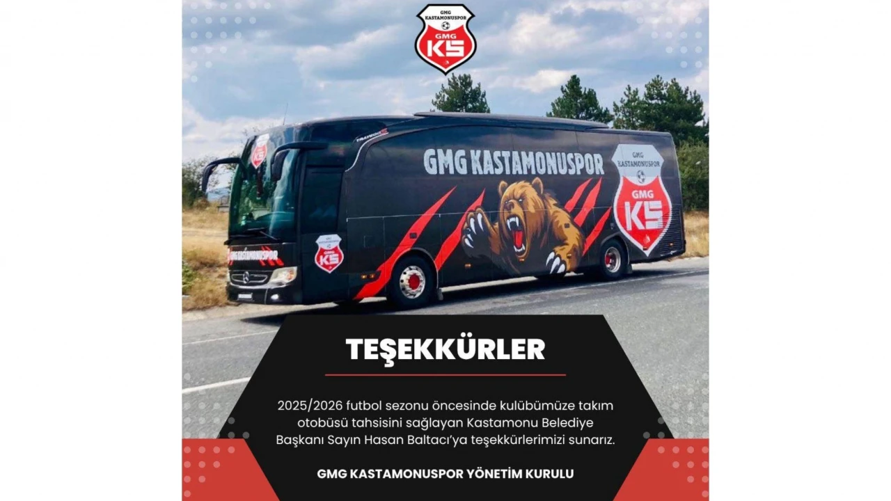 Kulüp yönetiminden yapılan açıklamada, “2025/2026 futbol sezonu öncesinde kulübümüze takım otobüsü tahsisini sağlayan Kastamonu Belediye Başkanı Sayın Hasan Baltacı’ya teşekkürlerimizi sunarız” ifadelerine yer verildi.