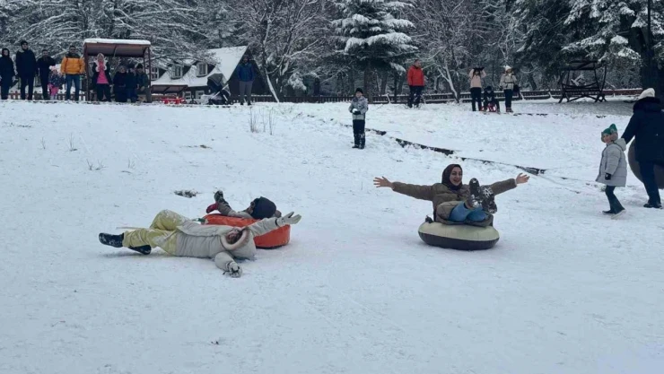 Kent merkezine 13 kilometre uzaklıkta bulunan Bolu’nun incisi olarak tabir edilen Gölcük Tabiat Parkı, hafta sonu tatilinde ziyaretçilerle doldu. Geçtiğimiz 3 gün boyunca aralıklarla kar yağışının etkili olduğu tabiat parkında kar kalınlığı 10 santimetreye ulaştı. Göl kıyısında bulunan rampada tabiat parkına gelen tatilciler tarafından kayak pisti oluşturuldu. Şambrellerini eline alan tatilciler, Gölcük’ün yolunu tuttu. Eğlenceleri anlar yaşayan tatilciler, şambrellerle kayarak tatilin tadını çıkarttı.