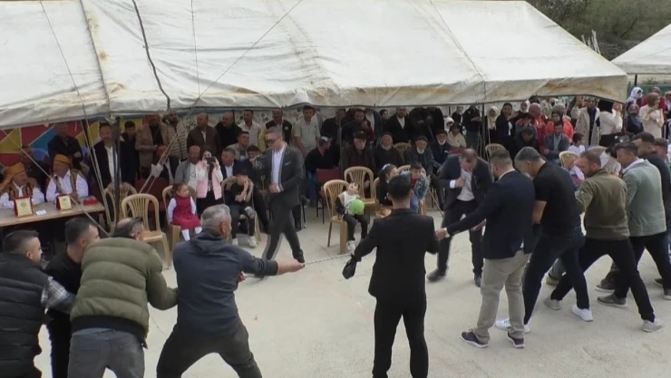 Çorum'un İskilip ilçesinde düzenlenen şenlikte onlarca vatandaş tarafından yapılan halat çekme yarışmasında ip kopunca ortaya renkli görüntüler çıktı.
