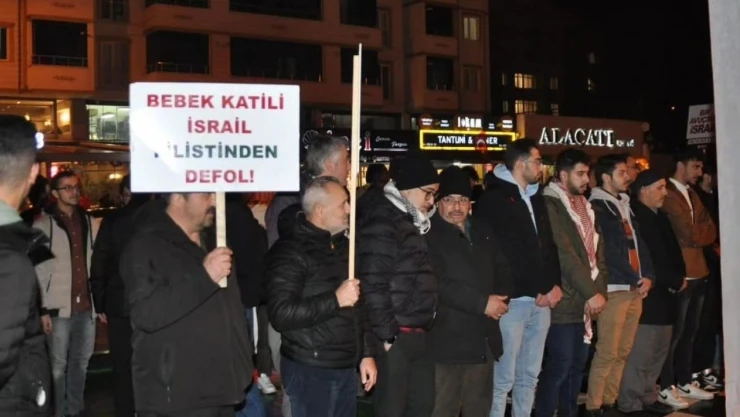 Törenin ardından konuşan AGD Karabük Şube Başkanı Aziz Gündoğdu çatışmaların başladığı 7 Ekim’den bu yana 30 bin civarında Filistinlinin hayatını kaybettiğini ifade etti.