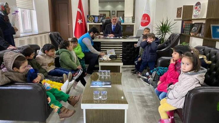 İl Müftüsü Derin'i makamında ziyaret eden minikler çizmiş oldukları resimleri de Müftü Derin’e hediye ettiler. İl Müftüsü Derin, “4-6 Yaş kurslarımızda Kur'an eğitiminin yanında değerler eğitimi de alan öğrencilerimizi merhamet ve vefa duygularından hareketle düzenlemiş oldukları bu anlamlı yardımları için kutluyor, ailelerine ve hocalarına teşekkür ediyorum. Rabbi’mden erdemli, merhametli, ümmet bilinci olan bir yaşam sürmelerini, her daim böyle evlatlar yetiştirebilmeyi nasip etmesini niyaz ediyorum” dedi.