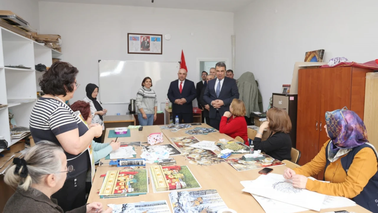 Merkezde açılan kurslar hakkında bilgi alan İl Müdürü Gümüş, atölyeleri gezerek kursiyerlerle sohbet etti. Öğrenme azmiyle üretime katkı sunan kursiyerleri tebrik eden Hasan Gümüş, "Halk eğitimi merkezlerimiz hayat boyu öğrenmenin en güzel adreslerindendir. Burada beceri kazanılırken özgüven, üretkenlik ve sosyal dayanışma da güçleniyor. Bu imkânları en verimli şekilde değerlendiren tüm kursiyerlerimizi ve onlara emek veren öğretmenlerimizi yürekten kutluyorum” dedi.