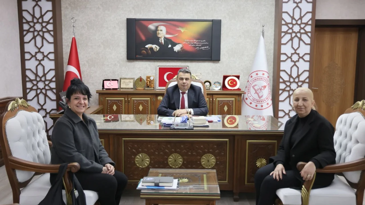 Türkiye Halk Oyunları Federasyonu Batı Karadeniz Koordinatörü Meltem Elham ve Kastamonu Halk Oyunları İl Temsilcisi Müjgan Buturoğlu, İl Milli Eğitim Müdürü Hasan Gümüş'ü makamında ziyaret etti.