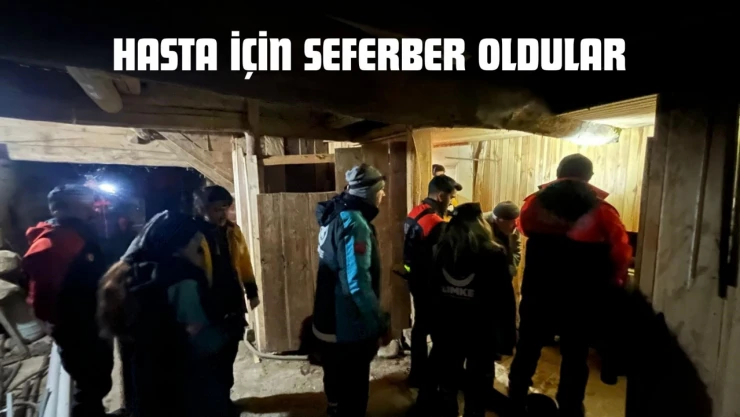 Kastamonu'nun Pınarbaşı ilçesinde yoğun kar sebebiyle yolu ulaşıma kapanan köydeki 95 yaşındaki hasta, ekiplerin yoğun mücadelesiyle hastaneye ulaştırılabildi.