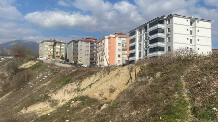 Yaşanan toprak kayması nedeniyle iki apartman da tehlikeyle karşı karşıya kalırken, korku yaşayan apartman sakinleri ise yetkililerden yardım bekliyor.