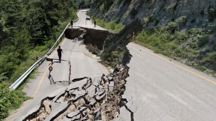 Heyelan sonrası çöken yol trafiğe kapatıldı