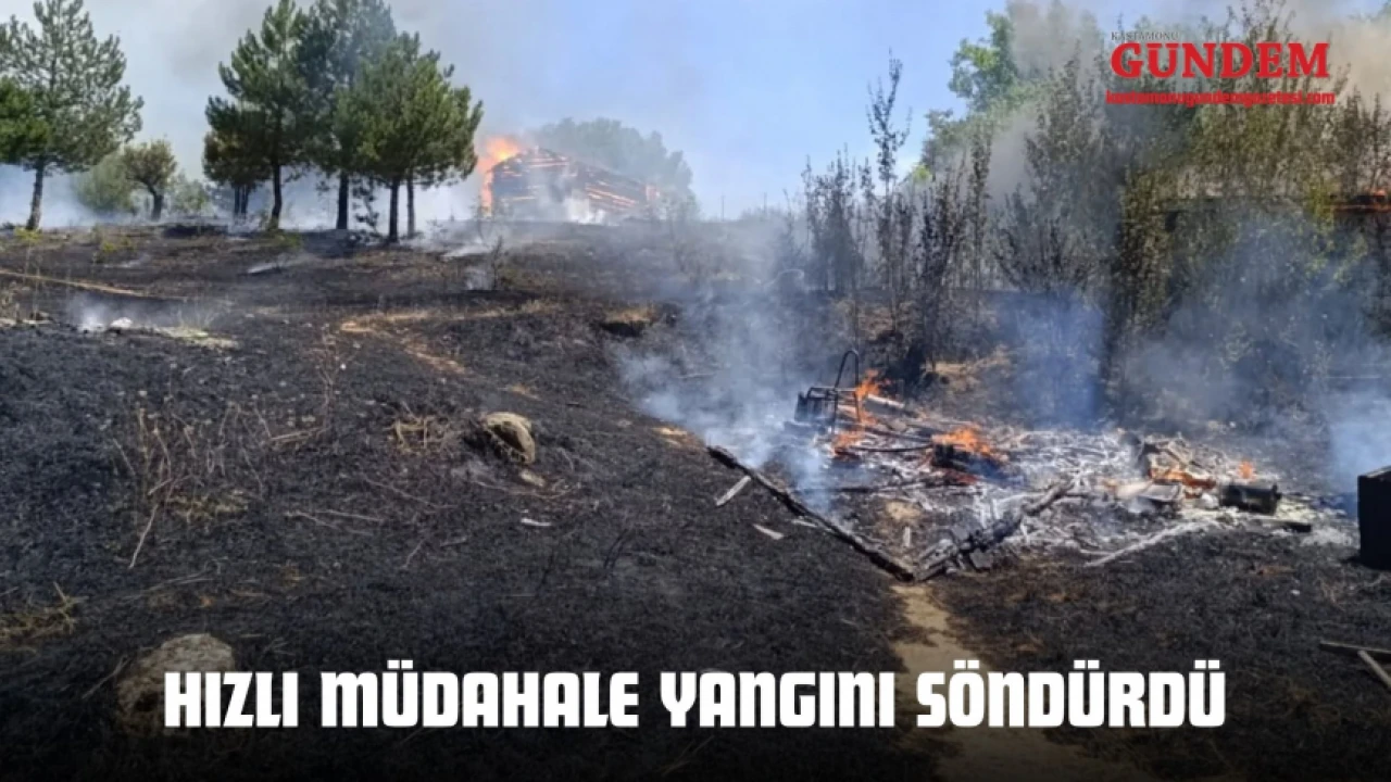 Kastamonu’nun Araç ilçesinde ormanlık alanda çıkan yangında samanlık, kümes ve baraka kullanılamaz hale geldi.