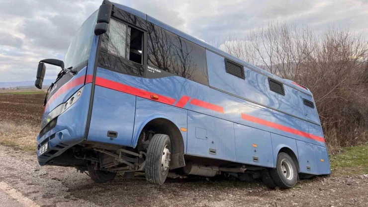 Çorum'un Sungurlu ilçesinde hükümlü taşıyan nakil aracının yoldan çıkarak yan yattı. Araçta bulunanlar kazayı yara almadan atlattı.
