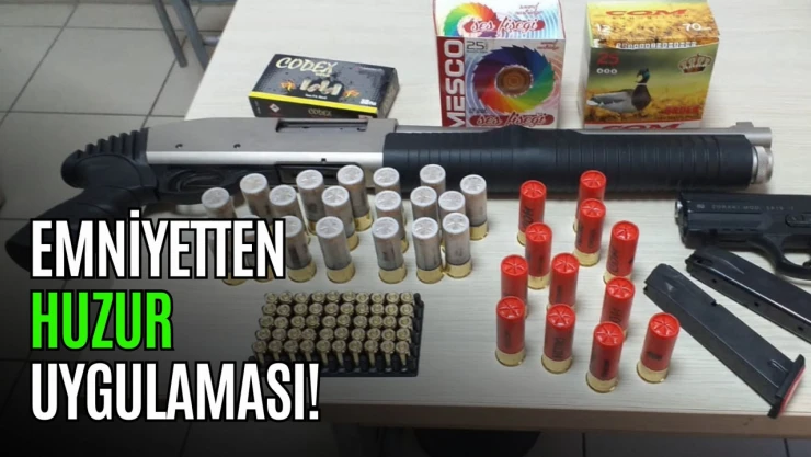 Denetim çerçevesinde Doğu Çevreyolunda durdurulan bir düğün konvoyundaki 2 şahıs üzerinde 1 adet pompalı tüfek, 32 adet kartuş, 1 adet kurusıkı 2 adet şarjör ve 50 adet kurusıkı tabanca fişeği ele geçirildi. 2 şahıs hakkında idari işlem başlatıldı.