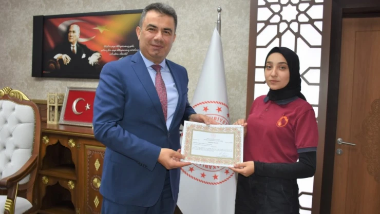 Ahilik Haftası kutlamaları çerçevesinde düzenlenen “Ahi Evran'dan Cumhuriyetin 100. Yılına Gelişen Meslekler” Temalı Resim Yarışması’nda il birincisi olarak dereceye giren öğrenci Fatma Nur Rabia Atıcı'ya Milli Eğitim Bakanlığı’nın takdir ettiği Teşekkür Belgesi İl Milli Eğitim Müdürü Hasan Gümüş tarafından verildi.