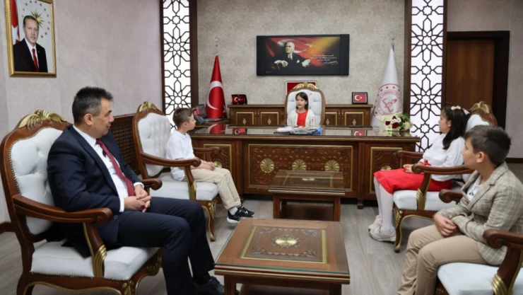 Gerçekleşen ziyarette Milli Eğitim Müdürlüğü makam koltuğuna oturan 4’üncü sınıf öğrencisi Aymira Uğur, isteklerini dile getirdi. İl Milli Eğitim Müdürü Hasan Gümüş, çocuklara hediyeler vererek onlarla hatıra fotoğrafı çektirdi.