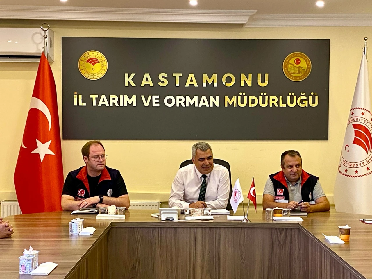 Kastamonu İl Tarım ve Orman Müdürü Ahmet Kılıç, ilçe müdürlüklerinde görev yapan veteriner hekimlerle toplantı gerçekleştirdi. Görüşmede, sahada yürütülen aşılama faaliyetleri, hastalıkla mücadele ve hayvan sağlığı çalışmaları ele alındı.