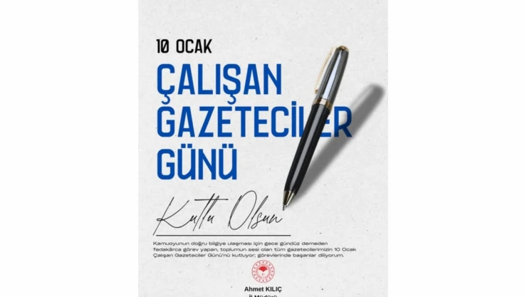 10 Ocak Çalışan Gazeteciler Günü dolayısıyla mesaj yayımlayan Kılıç; “Basın; toplumun doğru, tarafsız ve zamanında bilgilendirilmesinde önemli bir görev üstlenmekte, demokratik hayatın güçlenmesine katkı sağlamaktadır. Kamuoyunun haber alma hakkı için fedakârca çalışan gazetecilerimiz, aynı zamanda kurumlar ile vatandaşlar arasında önemli bir iletişim köprüsüdür. Bu vesileyle, meslek ilkeleri doğrultusunda büyük bir özveriyle görev yapan tüm basın emekçilerimizin 10 Ocak Çalışan Gazeteciler Günü’nü kutluyor; sağlık, başarı ve kolaylıklar diliyorum.” dedi.