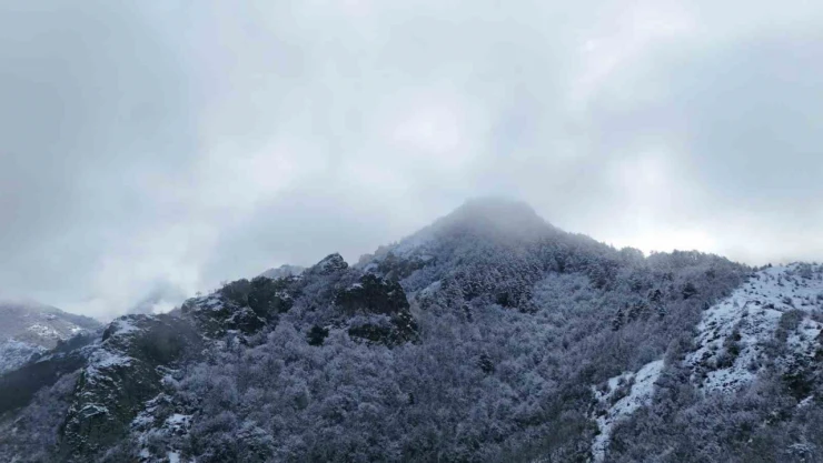 Kastamonu’nun İhsangazi ilçesinde, Ilgaz Dağı’nın eteklerinde sis ile karın buluşması kartpostallık görüntüler oluşturdu. Görenleri hayran bırakan manzara dron ile havadan görüntülendi.
