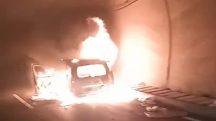 Ilgaz 15 Temmuz İstiklal Tüneli içerisinde motor bölümünden alev alan hafif ticari araç, alev alev yanarak küle döndü.