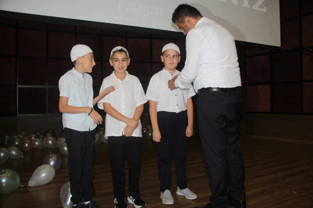 Programın açılış konuşmasını gerçekleştiren İlim Yayma Cemiyeti Kastamonu Şube Başkanı Mehmet Uyanık; “Kastamonu İlim Yayma Cemiyeti olarak altı hafta süren Kur'an kursu programımız bugün sona ermektedir. Evlatlarını emanet eden 125 aileye özellikle teşekkür ediyorum. Bize güvendiler. Biz de onların güvenine layık olmak için evlatlarımızı sabahın erken saatlerinden akşam 17:30’a kadar hem Kur'an-ı Kerim’i, hem temel dini bilgiler derslerini, hem kültür derslerini eğlenerek çocuklarımıza öğretmeye çalıştık. Eğer burada başarılı olduysak, ne mutlu bize. Sabahın erken saatlerinde servis araçlarımızla, hosteslerimizle, şoförümüzle ve hocalarımızla birlikte çocuklarımızı evlerinin önünden aldık. Çocuklarımızı yurttaki sınıflarımıza yerleştirdik. Saat onda bir ara öğün verdik; kek, meyve suyu ve suyu vardı. Öğle yemeğinde dört kap yemek, akşam üzeri yine aynı şekilde ve dondurmalarıyla birlikte çocuklarımızın beslenmesini ihmal etmedik” dedi.